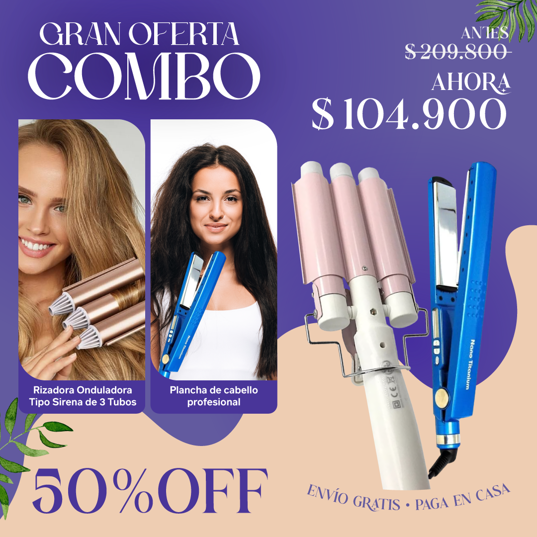 Combo: Rizadora Sirena + Plancha Nano Titanium Delgada